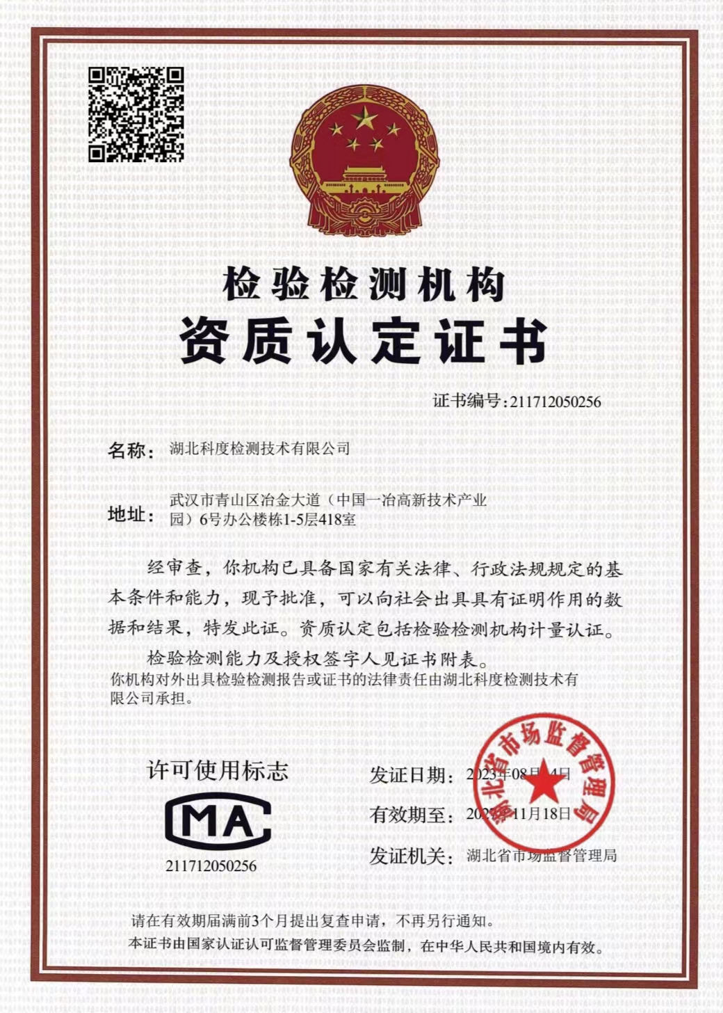 湖北科度檢測技術(shù)有限公司是一家專業(yè)從事環(huán)境類及相關(guān)領(lǐng)域檢測的第三方檢測機構(gòu),公司已通過湖北省市場監(jiān)督管理局CMA計量認證,可以面向社會出具權(quán)威CMA檢測報告。 我公司實驗室嚴格按照國家標準建設(shè),擁有一大批國內(nèi)外先進儀器設(shè)備及現(xiàn)代化配套設(shè)施,并有經(jīng)驗豐富的中高級專業(yè)技術(shù)人員和嚴格的實驗室質(zhì)量保證體系為項目運作提供強力支撐。 作為第三方檢測機構(gòu),公司始終以高度的社會責(zé)任感經(jīng)營企業(yè),以“公正、嚴謹、高效”為宗旨,依托專業(yè)的技術(shù)實力為客戶提供專業(yè)優(yōu)質(zhì)檢測服務(wù),受到政府、企業(yè)和社會各界的廣泛關(guān)注和認可。
